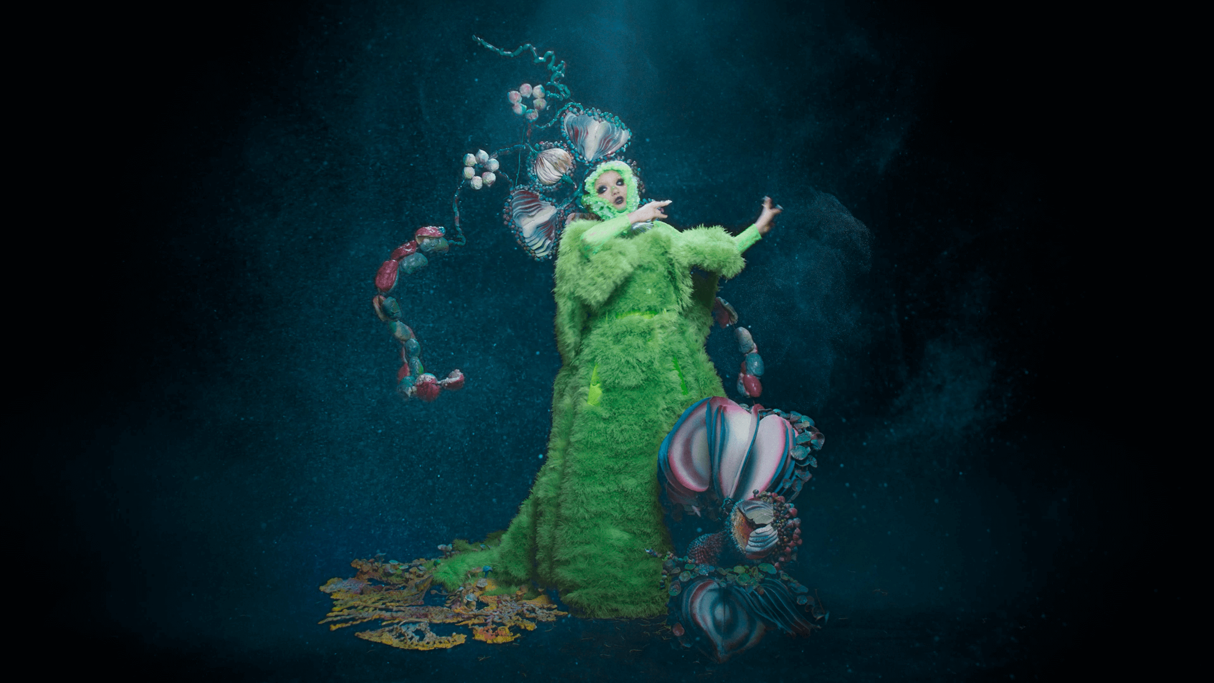 The video of Atopos was filmed in Iceland in May 2022 with an Icelandic team. the set design was a collaboration between Björk, Irma and M/M.